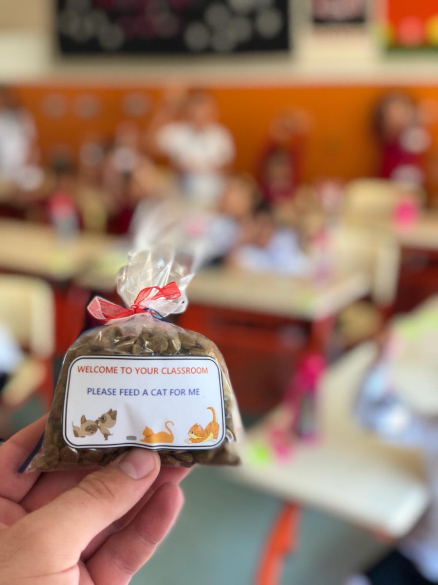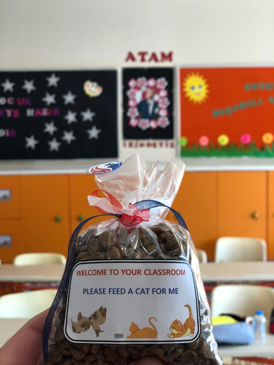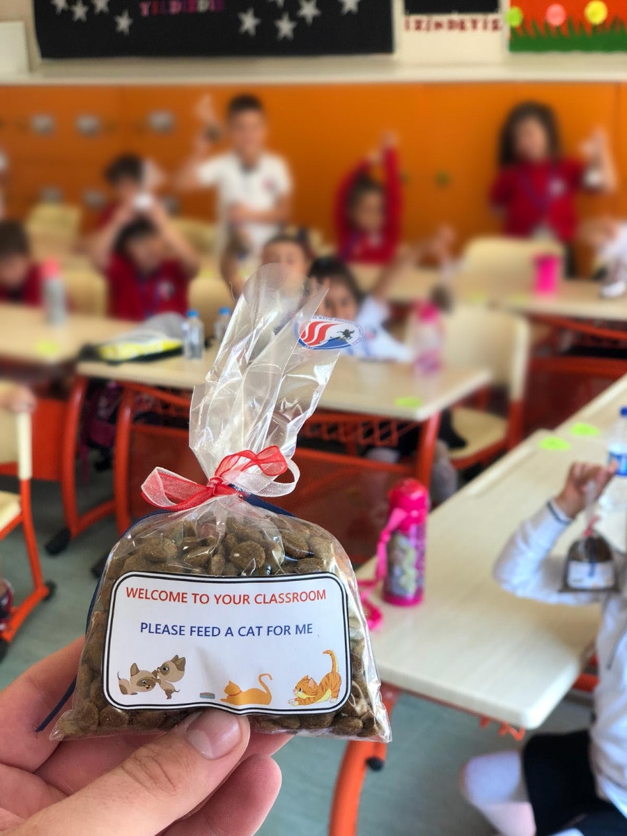 Tanışma etkinliği ile geçirilen günün sonunda çocuklara sokak kedilerine ulaştırılmak üzere hazırlanan kedi mamaları dağıtıldı. Eğitim-Öğretim yanında değerler eğitimi kapsamında hayvan sevgisi aşılamak amacı ile yapılan bu etkinlik çocuklar tarafından mutlulukla karşılandı.