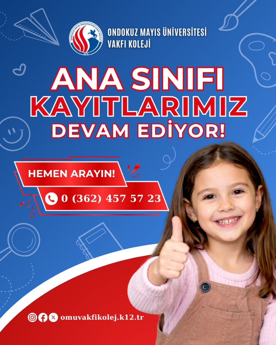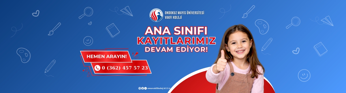 OMÜ Vakfı Koleji'nde 2026-2027 Eğitim Öğretim Yılı için ANA SINIFI kayıtları, sınırlı kontenjan avantajıyla devam etmektedir. Deneyimli kadromuz ve modern eğitim anlayışımızla çocuklarımızın gelişimini destekliyoruz. Kayıt detayları ve bilgi için okul yönetimi ile iletişime geçebilirsiniz.