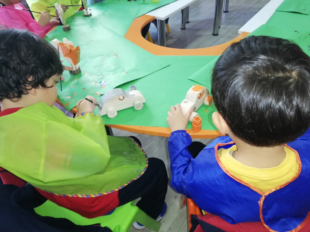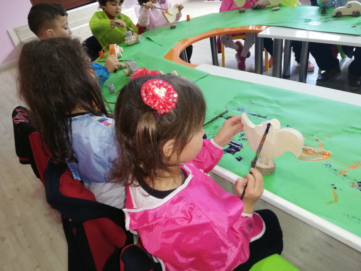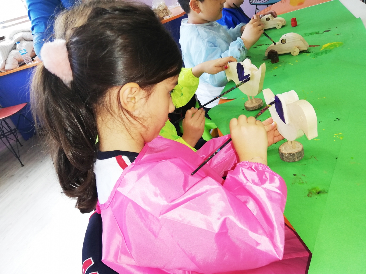 Tahta oyuncak boyama atölyesinde boyama yapan minikler, müzeden kendilerine birer hatıra alma imkânı buldular.