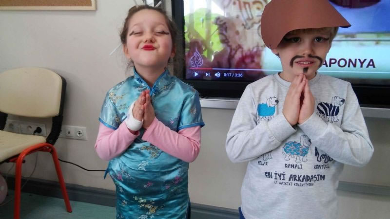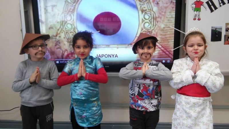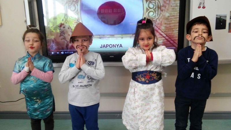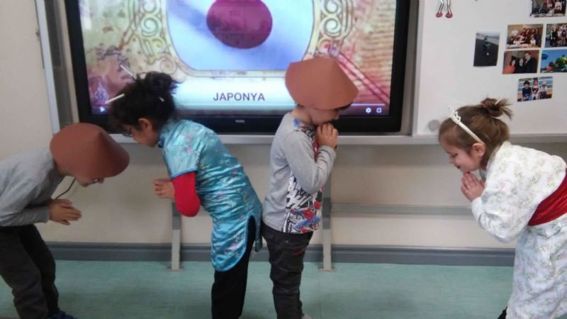 Ülkede yaşayan insanların fiziksel özellikleri,bitki örtüsü,geleneksel kıyafetleri, geçim kaynakları, para birimleri, bayrakları ve yemekleri araştırılarak incelendi. Sanat etkinlikleri dersinde kesme yapıştırma çalışmaları olarak ülkeye özgü çalışmalara yer verildi. Japon çocuk maskeleri yapılarak japon müziği eşliğinde dans edildi.