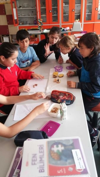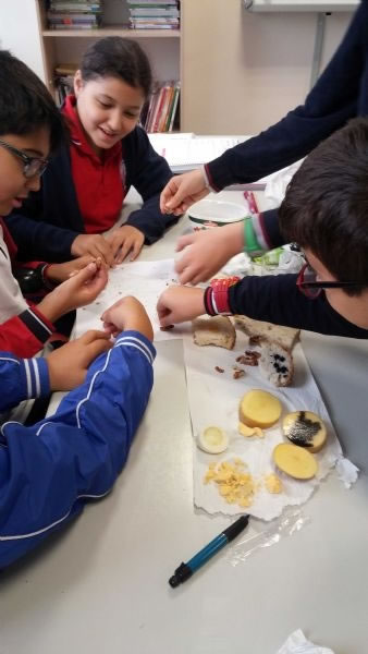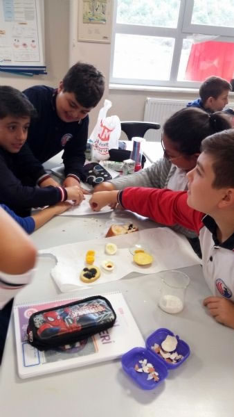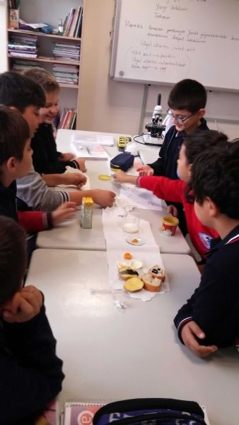 Okulumuzun 5. sınıf öğrencileri laboratuvar malzemelerini genel olarak tanımakla birlikte, bu hafta besin içeriklerini laboratuvarda yaptıkları deneylerle keşfettiler. Yaparak ve yaşayarak öğrenen öğrencilerimiz deneylerin yapım aşamasında çok heyecanlı ve mutluydular.