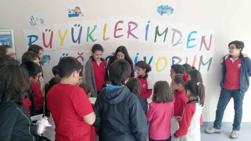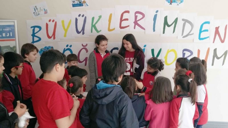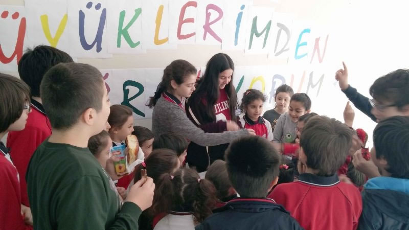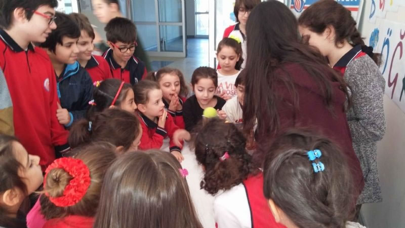 Okulumuzun ortaokul öğrencileri Büyüklerimden Öğreniyorum Projesi’yle küçük arkadaşlarına deneyler yaptırıyorlar. Her hafta salı ve perşembe günleri teneffüs aralarında yapılan bu etkinlikler sayesinde öğrencilerin Fen Bilimleri’ne olan ilgi ve becerilerinin arttırılması hedefleniliyor. İlkokul ve ortaokul dayanışmasına dayanan bu projede yapılan deneylerle, öğrenciler hem eğleniyor hem de büyüklerinden deneylerin bilimsel açıklamasını öğreniyorlar.