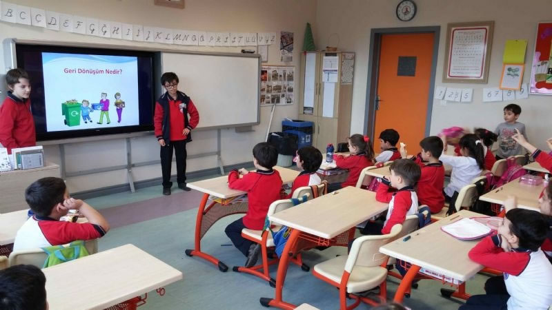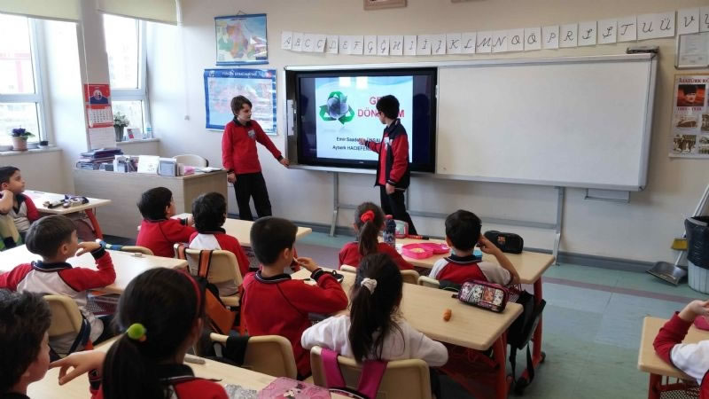 Okulumuzda Fen Bilimleri dersi kapsamında yürütülen “Büyüklerimden Öğreniyorum” projesiyle etkinlikler yapılmaya devam ediliyor. Bu hafta deney sunumlarının yanında 7. sınıf öğrencilerimizden S. Emir ÜNSAL ve Ayberk HACIEFENDİOĞLU, 1. sınıf öğrencilerine “Geri Dönüşüm” konusunda bilgilendirmede bulundurlar. Keyifli sunumlarından ve etkili katılımlarından dolayı öğrencilerimi kutluyor, başarılarının devamını diliyoruz.