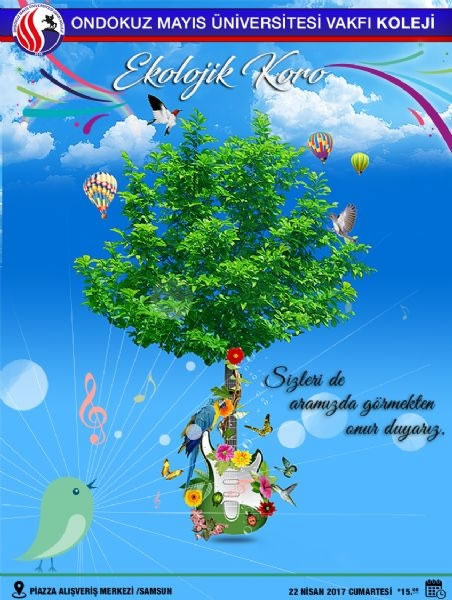 OMÜ Vakfı Koleji bünyesinde her yıl geleneksel olarak gerçekleştirilen; doğa ile sanatın buluştuğu ve öğrencilerimizin doğal materyaller ile kendi müziklerini yaparak dans ettikleri "Ekolojik Koro" gösterisi, 22 Nisan 2017 Cumartesi günü saat 15:00'te Samsun Piazza AVM'de sahne alacaktır.