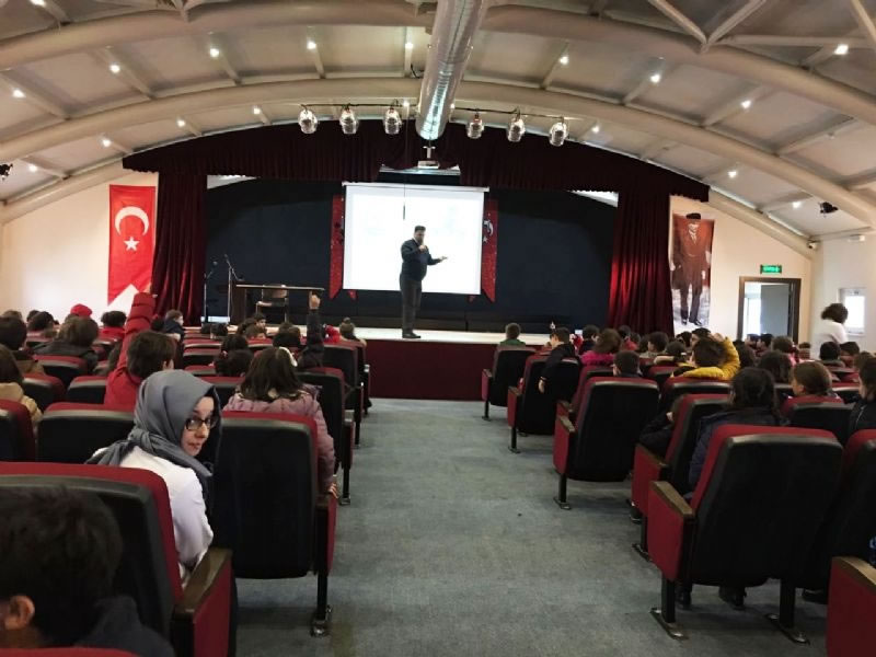 Okulumuzda Samsun Maarif Hareketi kapsamında Geri Dönüşüm ve Çevre Bilinci etkinlikleri devam ediyor. Çevre Yüksek Mühendisi Özcan ÇOLUK tarafından gerçekleştirilen eğitim etkinliğine öğrencilerimiz yoğun ilgi gösterdiler. Okulumuz konferans salonundaki sunum ve interaktif eğitim etkinliğinde Sn. Özcan ÇOLUK çok önemli bilgiler aktardılar. Dünyamızın kaynaklarının sınırsız olmadığına değinen Sn. ÇOLUK kaynakların verimli ve etkin kullanımı ile geri dönüşümün hayati önemine dikkat çekti.