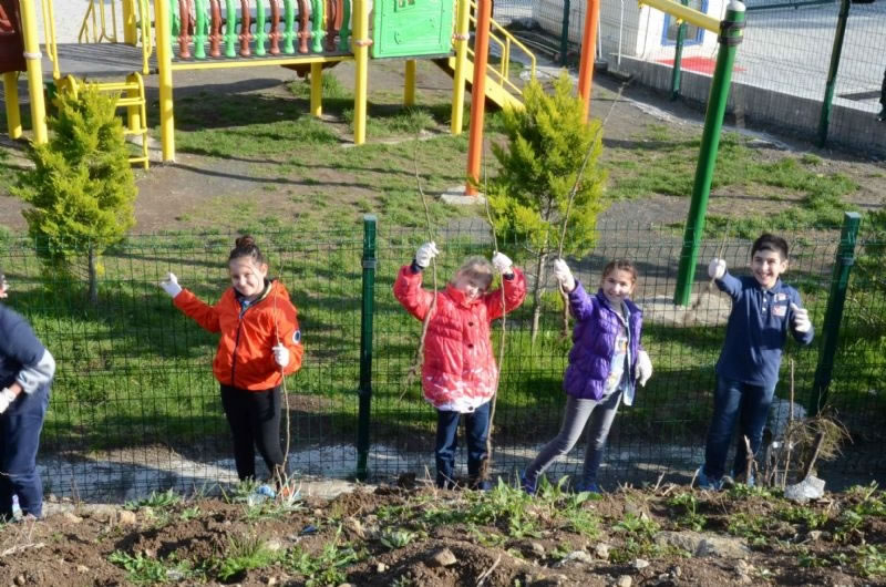 4/A sınıf velimiz Sayın Resül Şahin’in getirerek öncülük yaptığı bodur elma ağaçlarını öğrenci, öğretmen ve idarecilerimizle birlikte okulumuzun bahçesine diktik. Okul bahçesinde baharın gelişiyle birlikte toprakla haşır neşir olan öğrencilerimiz sonraki nesillere bıraktıkları fidanlar için çok mutlu oldular.