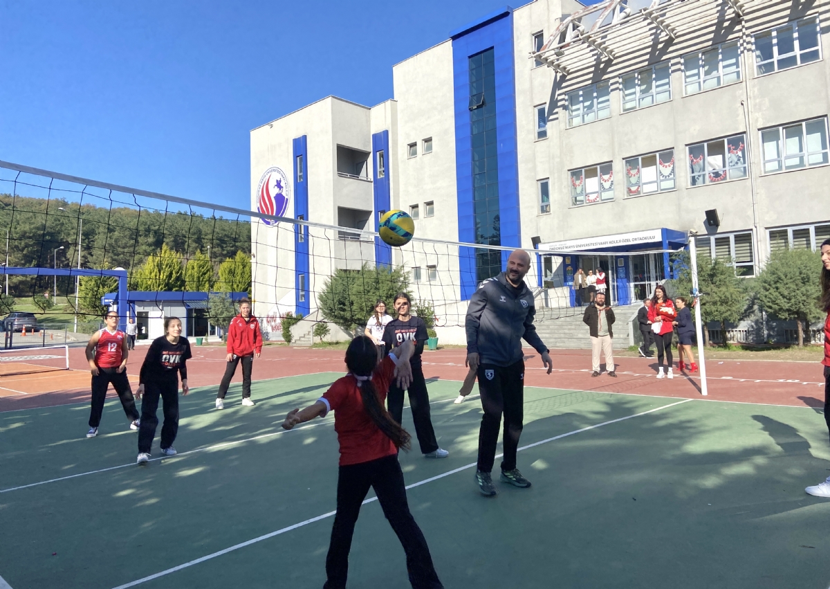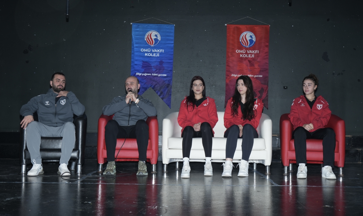 Sınav Koleji Samsunpor Voleybol takımı oyuncuları, OMÜ Vakfı Koleji öğrencileriyle bir araya gelerek keyifli bir söyleşi gerçekleştirdi. Öğrencilerin merak ettiği soruları içtenlikle yanıtlayan sporcular, hem voleybol kariyerlerine dair ilham verici bilgiler paylaştı hem de gençlere motivasyon dolu anlar yaşattı.