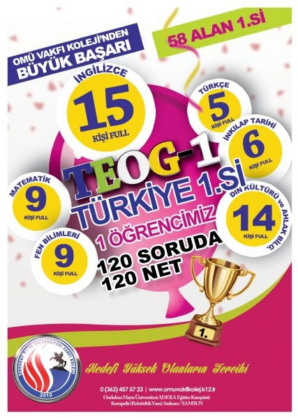 Okulumuz 8.sınıf öğrencileri TEOG sınavında ailelerinin ve öğretmenlerinin göğsünü kabartacak başarı elde ettiler. Genel sonuçların son derece başarılı olduğu takdir edilmiş ve TEOG' da 120 soruyu doğru cevaplayan öğrencimiz Ali YİĞİT ÖKSÜZ Samsun Valimiz Sayın İbrahim ŞAHİN tarafından ödüllendirilmiştir.